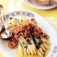 Aspergesalade met St. Jakobsschelpen, Aspergesalade, Aspergesalade met truffelvinaigrette, Aspergesalade met champignons