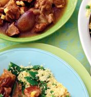 Ingrediënten Porties : 6 2 eetlepels olijfolie 1 ui, fijngesneden 1/2 rode paprika, fijngesneden 1 prei, in dikke stukken gesneden 6 wortels, in dikke stukken gesneden 4 aardappelen, gehalveerd 230 gr kleine oranje pompoen - geschild, zonder zaadjes en in grote stu [...]