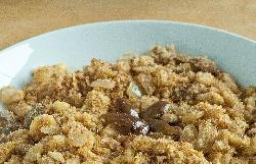 Ingrediënten Porties : 4 3 eieren 2 eetlepels koud water zout en peper naar smaak 1 1/2 eetlepel boter 1 fijngesnipperde ui 3 kopjes geroosterd maniokmeel gehakte groene olijven naar smaak 1 eetlepel gehakte peterselie Bereidingswijze Voorbereiding: 5 mi [...]