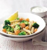 voor 2 personen 200 g penne rigate- 1 pakje gerookte zalmblokjes- 1 bekertje creme fraiche (125 ml)- 1 dl water- 300 g broccoli, beetgaar gekookt en in roosjes- 1 rode paprika- 1 uitje- 3 theelepels tuinkruidenboullionpoeder of 1 tuinkruidenboullionblokje, verkruimeld- 2 eetlepels ol [...]