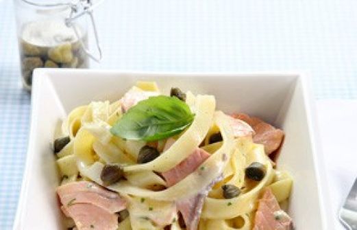 500 gram Grand'Italia Tagliatelle all`uovo 1 eetlepel Grand'Italia Capperi (kappertjes) 3 dl room 300 gram zalm, in stukken gesneden 1 blokje groentebouillon 1 snufje zout 1 snufje peper Bereidingswijze Stap 1: Kook de tagliatelle volgens de aanwijzing op de verpakking [...]