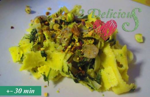 voor 4 personen 2 el walnootolie 1 bundel bosuitjes, in schijfjes 2 tenen knoflook, in dunne schijfjes 250 g champignons, in plakjes zout en peper 500 g groene en witte tagliatelle 250 g diepvriesspinazie, ontdooid en uitgelekt 150g zachte roomkaas met knoflook & kruiden 4 el room 1 [...]
