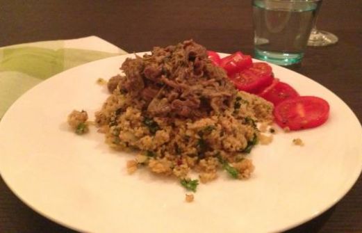 voor 4 personen Voor het vlees 600 gram lamsschouder in blokjes 600 ml rundvleesbouillon (liefst van de slager) Paar takjes rozemarijn Paar takjes tijm Paar takjes peterselie 5 gepelde teentjes knoflook Zout en peper 1/2 tl ras el hanout Couscous 1 Ui Paar takjes verse munt Hand [...]