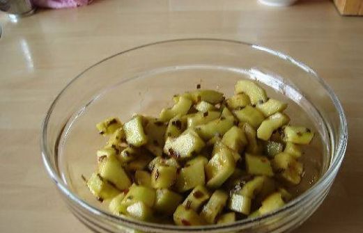 *1/2 komkommer *1eetl ketjap manis *1theelsambal oelek *1theel donkerbruine basterdsuiker *1eetl gesnipperde munt of bieslook Bereidingswijze Was de komkommer ,halveer deze en schraap een lepeltje de zaadjes eruit. Snij de helften in de lengte nogmaals door en snijd de kwarten [...]