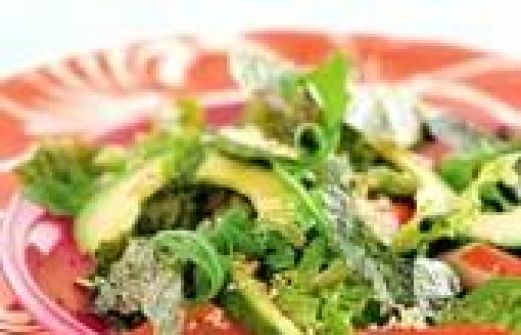 voor 4 personen 2 norivellen 2 el sesamzaad 1 rijpe avocado 2 el limoensap 3 el sesamolie 1 tl sake 1 el lichte sojasaus 1 zak eikenbladsla (100 g) 1 bakje Hollandse garnalen (100 g) Voorbereiding Rooster de norivellen in een droge koekenpan ca. 30 seconden aan beide zijden [...]