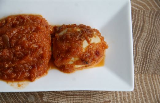 Sambal Goreng Telor ( eieren in pikante saus) Ingrediënten: 8 eieren, hard gekookt (circa 8 minuten) 2 uien 2 eetlepels arachide olie 2 theelepels knoflookpoeder 1,5 theelepel laos 4 theelepels sambal tjampoer 3 theelepels Javaanse of bruine basterd suiker 1,5 eetlepels tomaten puree [...]