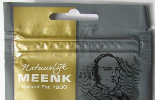 Meenk maakt op dit zakje 'diamonds' weinig woorden vuil aan ver- leidende teksten of aanprijzingen anderszins. Wel staat er tot twee maal toe "Holland Est. 1900" vermeld; maar waarom dan moet de naam van het dropje weer zo nodig in het Engels? Wat zou er mis zijn met 'diamanten'? Het h [...]