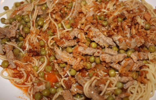 T. heeft dit afgelopen week gekookt. Altijd fijn als je thuis komt en het ruikt naar lekker eten! 2 el olie, 350 gram in reepjes/blokjes gesneden hamlappen, 1 gesnipperde ui, 1 el kerrie, 1 dl tomatenketchup, 1 tl worcestershiresaus, 1 dl bouillon Verhit de olie in de [...]