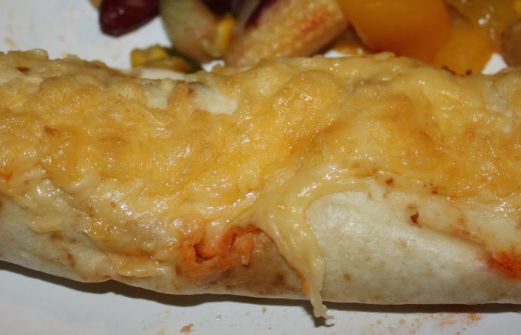 8 tortilla's, 400 gram kipfilet, 1/2 tl gemalen komijn, 2 el olie, 1 ui, 1 paprika in blokjes, 2 el rozijnen, blikt tomaatstukjes, mespunt kaneel, gemberpoeder, tijm, geraspte belegen kaas Snijd de kip in blokjes en bestrooi met de komijn. Bak in 1 el olie gaar en bruin. Neem uit de pan [...]