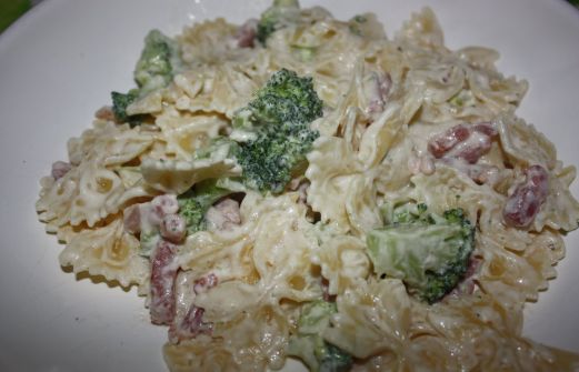 250 gram pasta, 125 gram ontbijtspek in blokjes, 1 stronk broccoli, 125 gram crème fraîche, 100 gram kruidenroomkaas Kook de pasta beetgaar. Kook de broccoliroosjes gaar. Bak het ontbijtspek tot het lichtbruin is Voeg de crème fraîche en de roomkaas toe, Laat dit smelten en voeg de ui [...]