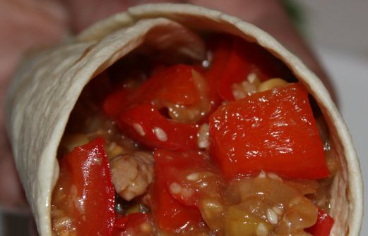 gegeten op 26 mei Toen ik thuiskwam rook het naar lekker eten. nodig: 1 rode paprika, 2 bananen, olie, 300 gram vleesreepjes, 400 gram preiringen, 2 el geroosterde sesamzaadjes, half flesje woksaus Zoete Soja, wraps Paprika en banaan in kleine blokjes snijden. roerbak v [...]