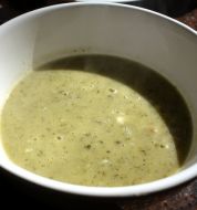 2 grote courgettes (+- 30cm) 2 uien 2 knoflookteentjes 1 eetlepel mosterd 1 koffielepel kerriepoeder 1 koffielepel paprikapoeder 1,5 l kippebouillon = 2,5 blokjes 1 eetlepel olie Bereidingswijze Snij de courgettes in blokjes, de uien in reepjes en pers de knoflookteentjes uit [...]