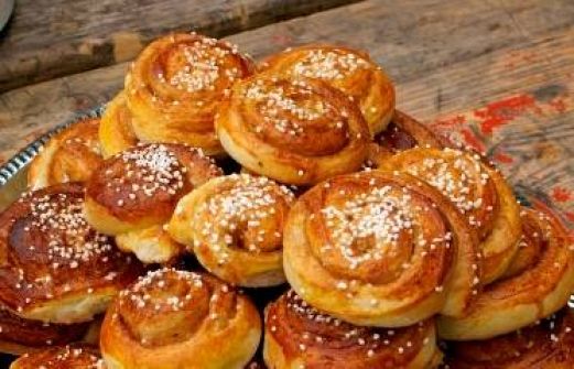 Deeg: 540 gr bloem van goede kwaliteit 100 gr suiker o,5 tl zout 0,5 tl kardemom 60 gr gesmolten boter 1 pakje verse of 1 zakje droge gist 3 dl lauwe melk voor de vulling: ? 50 gr gesmolten boter suiker naar smaak kaneel naar smaak afwerking: geklopt ei witte greinsuiker (grov [...]