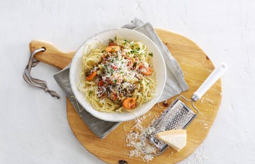Ingrediënten 125 g dupuis-linzen (zak 400 g, Smaakt) 600 ml kraanwater 2 knoflook 1 ui 75 g Parmezaanse kaas 3 stengels bleekselderij 200 g winterpeen 3 el olijfolie 1 el gedroogde Italiaanse kruiden 100 ml droge witte wij [...]