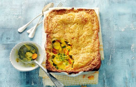 Ingrediënten 150 g winterpeen 250 g preien 40 g boter 1 laurierblaadje 1 el kerriepoeder 25 g bloem 300 ml melk 375 g kabeljauwfilet 225 g tuinerwten (diepvries) 6 plakjes bladerdeeg (ontdooid) 50 g geraspte kaas pi [...]