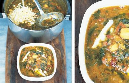 voor 4 personen 5 el olijfolie extra vierge, 150 gr chorizoworst - fijngehakt, 1 ui - gesnipperd, 1 teen knoflook - fijngehakt, 2 stengels bleekselderij - fijngehakt, 500 gr spinazie - gewassen en gehakt, 8 tomaten - zonder zaadjes en grof gehakt, 1 blik gekookte kikkererweten (400gr), 1,3 l [...]