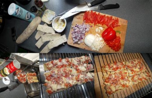 voor 4 personen 3 Tomaten 1 Ui / Rode ui óf 2 Sjalotjes ½ Paprika 2-3 Teentjes knoflook ½ Mozerella Italiaanse kruiden Peper / Zout Olijfolie Pesto Groen / Rood Parmazaanse kaas Kruiden / Knoflook boter Stokbrood / Ciabatta Elke dag iets lekkers! 4 x Smu [...]