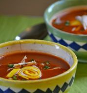 voor 6 personen 1,5 liter verse kippenbouillon zonder zout, 1 pakje tomatensoep (met zout) 1 blikjes tomatenpuree. 3 bolletjes stemgember op siroop+ 2eetlepels gembersiroop. 1 handje vermicelli +/- 100 gram tauge 1 handje prei ringetjes Elke dag iets lekkers! 4 x Smult magazine & [...]