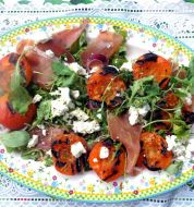 voor 6 personen 2 plakken mager rookspek; 2 middelgrote uien; 2 tenen knoflook; 2 winterwortels; 2 stengels bleekselderij; olijfolie; 2 theelepels gedroogde oregano; 500 g half-om-halfgehakt; 2 blikken tomatenblokjes (a 400 g); 1 bakje verse basilicum (15 g); 150 g Parmezaanse kaas; 250 g la [...]