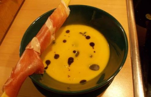 voor 6 personen Hokkaido pompoen (de bolle oranje) van plm. 1 kilogram 3 sjalotjes of 1 ui 2 teentjes knoflook 2 eetlepels zonnebloemolie 10 gram (room)boter 1 eetlepel kerriepoeder 1 1/2 dl droge witte wijn 1 dl gevogeltefond 1 kleine appel (bijv. Elstar) 1 middelgrote winterpeen [...]