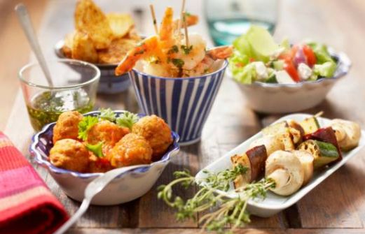 · 12 gepelde gamba`s met staart · verse peterselie · 2 teentjes knoflook · 2 eetlepels olijfolie · 4 grote aardappels · 1 eetlepel paprikapoeder · verse koriander · 1 bakje champignons · 1 courgette · 1 rode ui &m [...]