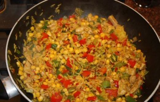Alleen al van de kleuren van dit recept van een lenterijstpannetje word ik helemaal vrolijk. In dit recept wordt de rijst gekookt met wat koenjit en wordt daardoor prachtig geel van kleur. De rijst wordt gecombineerd met een roerbak van onder meer kipfilet, groene paprika, rode paprika, prei en [...]