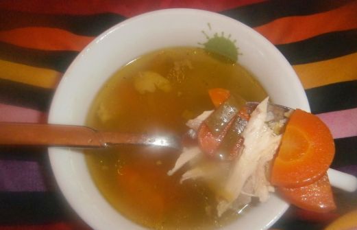 Gisteren heeft Peter een grote pan verrukkelijke en vooral aansterkende soep gemaakt voor mij van een soepkip die ik via de hofweb via internet had besteld. Deze week in de aanbieding voor 5 euro, geen geld voor een biologisch soepkip en het was een soep waar ik wat kracht van kreeg! Proeven do [...]