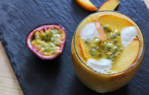 Een smoothie met kokoswater, mango, perzik, banaan en passievrucht. Boordevol vitamientjes en lekker zoet. Wat heb je nodig (2 glazen): - 200 ml kokoswater - 1 mango, geschild en in stukjes - 2 perziken, in stukken, (houd wat stukjes apart voor als garnering) - 1 banaan,gepeld, in stu [...]