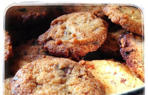 Overheerlijke chocolate chip cookies! 350 gr boter + 2 eidooiers 100 gr suiker & 75 gr basterdsuiker 150 gr pure chocolade in kleine brokjes 30 minuten rusten Balletjes maken en pletten 10-12 min in oven. Eet smakelijk!