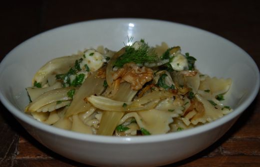 Sommige gerechten smaken vaak koud nog beter dan warm en dit is zo'n gerecht. Pasta met venkel, kervel, walnoten en gorgonzola. Lekker als het warm is, maar koud komt vooral de anijssmaak van de venkel en kervel veel beter tot z'n recht. 300 gram farfalle 2 venkelknollen 2 uien 2 tenen knoflook [...]