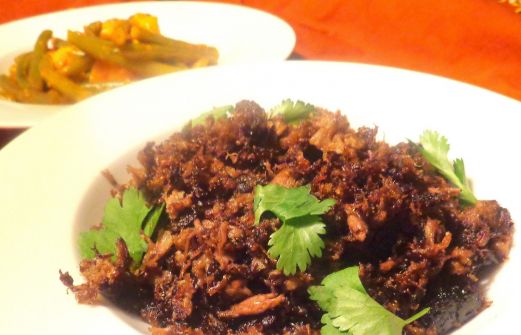 Ik had nog veel vlees en wat bouillon over van de Soto Madura . Hiervan Abon Abon gemaakt. Ik schrijf hieronder het originele recept, maar sloeg dus de eerste etappe over.