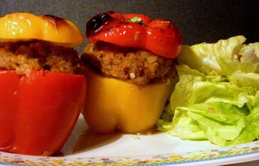 Vandaag sneeuwt het en heb ik geen zin om de deur uit te gaan om boodschappen te doen. In de koelkast lag nog wat shoarmavlees en een rode en een gele paprika. En een krop sla.