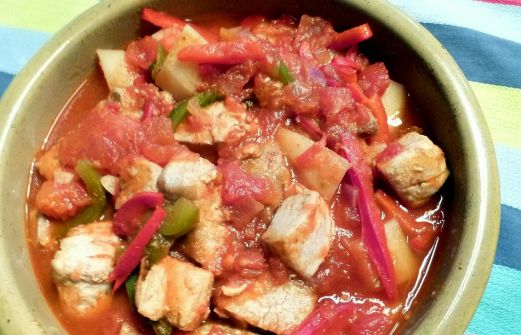800 gr tonijn in blokjes van 2-3 cm gesneden.