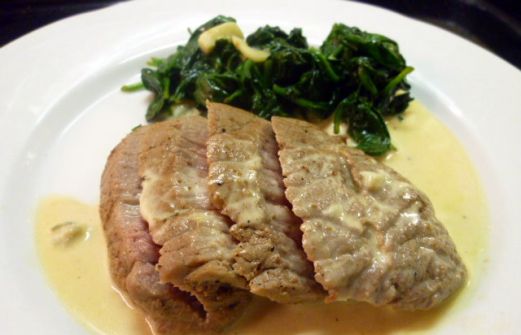 Ingrediënten: 2 kalfsoesters Peper en zout 20 gr boter 100 ml slagroom 50 gr gorgonzola