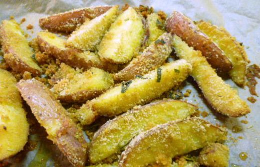 Laissez la peau sur les pommes de terre et découpez-les en forme de frites.