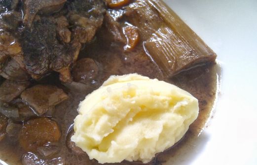 Ossenstaart met meegestoofd preiwit, wortel en aardappelpuree