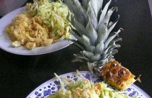 Na de lekkere pastasalade van gisteren uit de Boodschappen, durfde ik ook meteen wel de kerrierijst met ananas uit hetzelfde blad aan. Je kunt het natuurlijk met ananas uit blik maken, maar er gaat echt niets boven verse ananas!