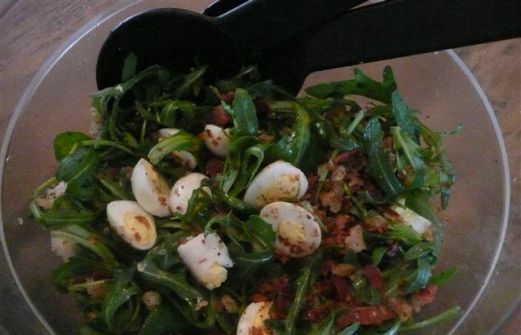 Ik was een beetje huiverig voor een sladressing met alleen beetje olijfolie en redelijk wat citroensap, maar omdat de pancetta best zwaar van smaak is, maakte het citroensap het geheel juist lekker fris. In het originele recept uit de Allerhande staat dat je jonge bladsla kunt gebruiken, maar i [...]