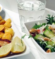 - Met vis en zeevruchtenNee