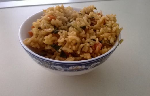 Portie rijst voor 3 pesronen, theelepel sambal, knoflook, ui, wortel, stronk paksoi, sojasaus, ketjap, gemberstroop