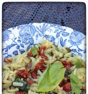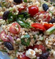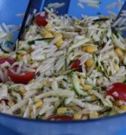 200 gram orzo , zout en peper, 1/2 komkommer, 1 rode en een gele paprika, 1 ui, grote teen knoflook, paar schij [...]
