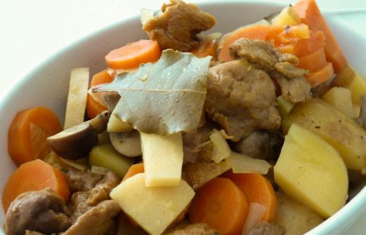 Grote pot seitan stukjes van Yakso ,1 grote ui gesnipperd, 1 selderijstengel in stukjes, 2 tenen knoflook geperst, 5 medium size wortels, bakje champignons gehalveerd, 5 aardappels in stukken, 2 pastinaken in stukken, takje rozemarijn, theelepel tijm, 2 laurierblaadjes, vocht va [...]