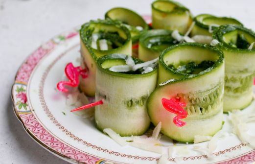 Courgette rolletjes met rucola pesto en parmezaan