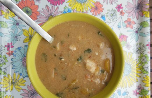 Ik maak deze soep met versgemalen pinda's, maar je kunt ook gewoon pindakaas gebruiken. Kies dan het liefst voor een soort met stukjes noot erin, dat geeft de soep net iets meer bite. De soep wordt gebonden door wat geraspte bakbanaan toe te voegen.