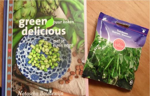 Ik heb dit leuke boek te leen en krijg helemaal zin in de lente. De tuinboon komt als eerste aan de beurt en met enthousiasme beschreven moest ik gelijk een zakje tuinboonzaden kopen.