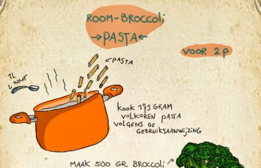 English version of the recipe (broccoli-cream pasta): For 2 persons: - cook 175 gr. pasta in salted water.