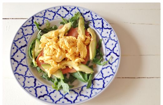 Maak een roerei van 2 eieren, geklutst met peper & zout. Maak een beetje rucola (2 handjes rucola ongeveer) aan met olijfolie & citroensap. Snij een halve avocado in reepjes en [...]