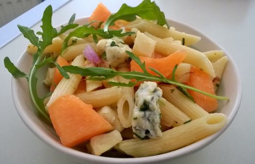 (of op zijn Hollands, koude pasta met meloen en gorgonzola)