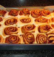 Kaneelbroodjes zijn een graag geziene gast in de brooddozen van de heren hier thuis. Het heeft wat weg van bolussen, maar zijn minder plakkerig en hebben een uitgesprokenere kaneel smaak. Tja... lijken ze er echt op dan? Nee niet echt, maar goed even voor jullie beeld en smaakvorming ;).