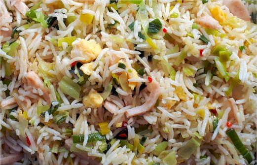 Deze nasi goreng is gemaakt met basmatirijst. Basmatirijst